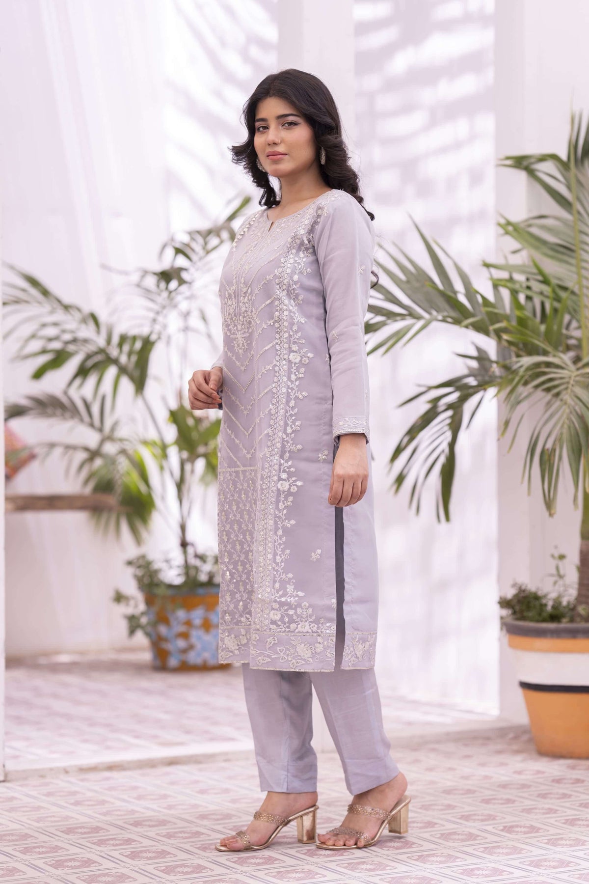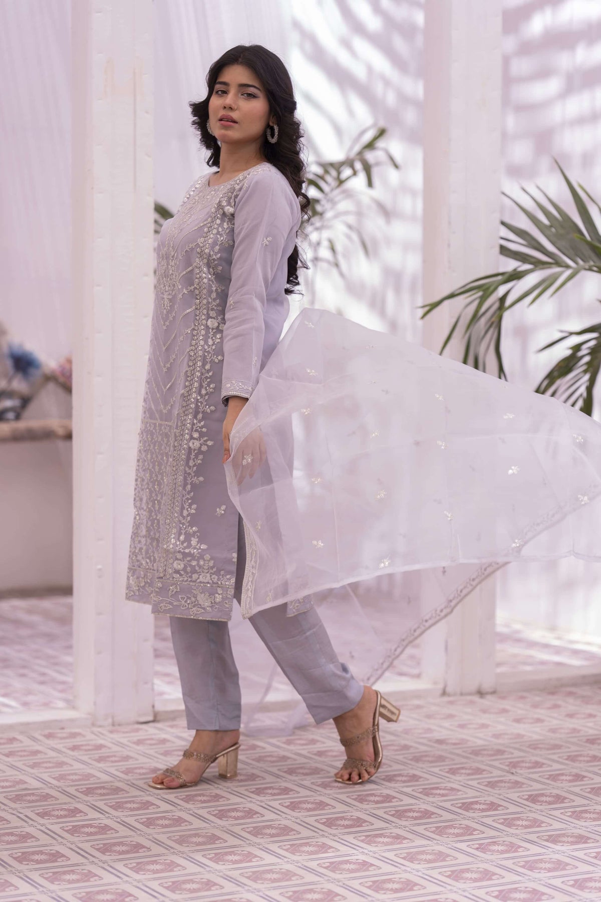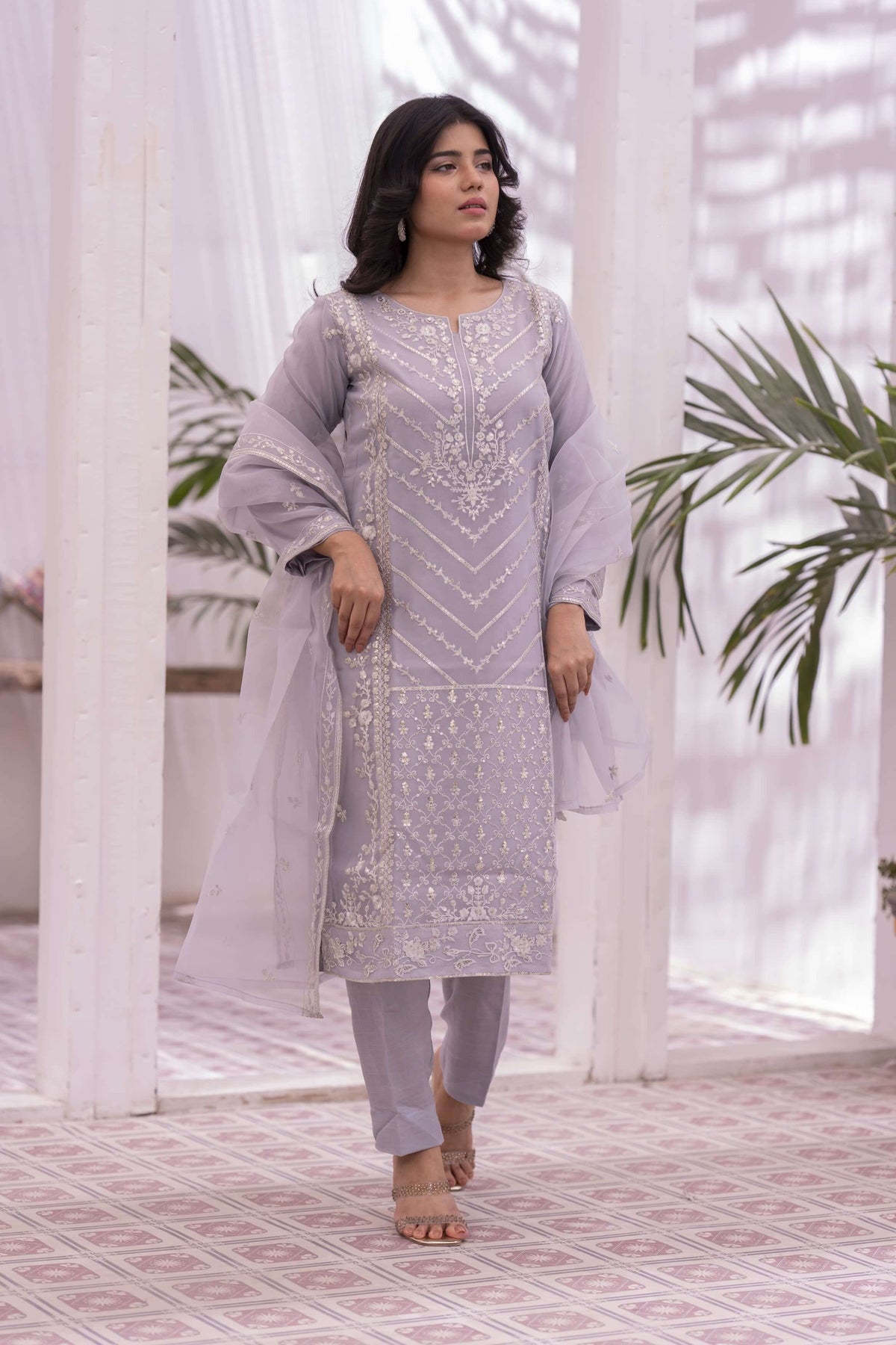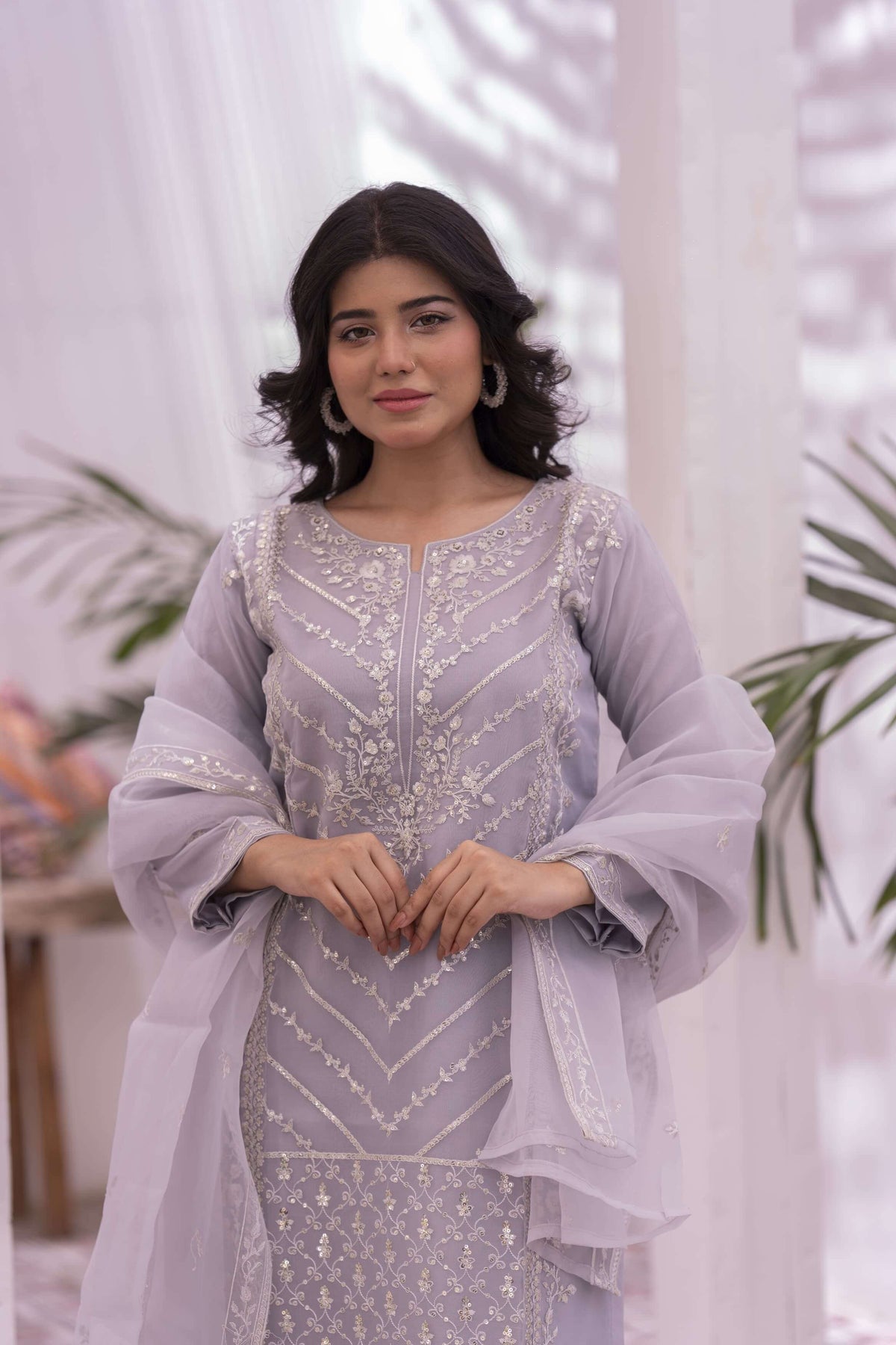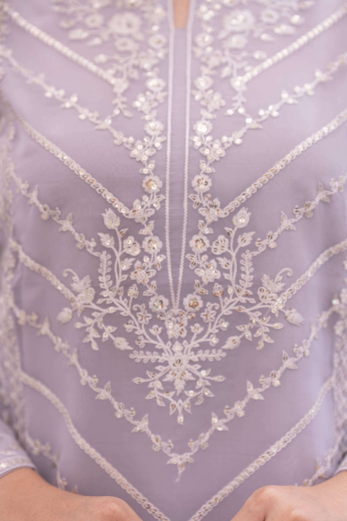 Women's Lilac Organza Shalwar Kameez with White Embroidery